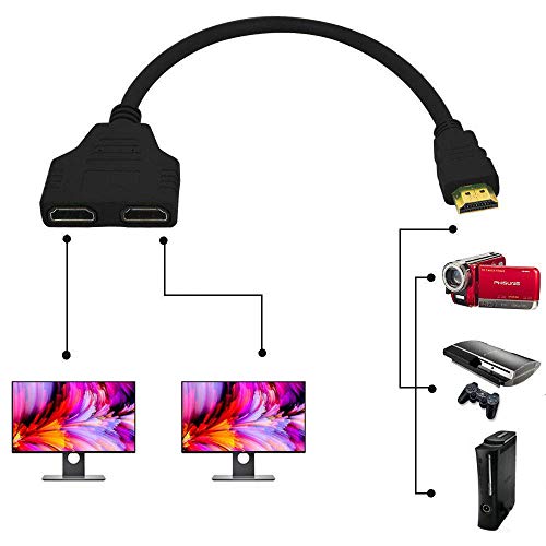 - Good choice:This HDMI splitter cable is great for connecting one HDMI compatible device (Xbox,Blueray,DVD players,for PS3) to two visual output devises.